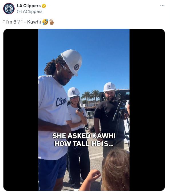 活动期间,保罗让一位小女孩问小卡有多高,后者回答说:我的身高是6英尺7英寸(约2米01)。