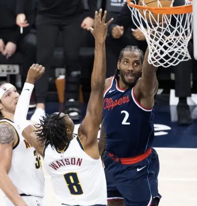 另外快船的内线巨兽祖巴茨和科林斯,对抗约老师和戈登虽然吃点亏,可是已经没有上赛季那么吃亏了,俩人半场合砍17分10个篮板也是很拼的。关键在于快船在体型上终于能够和掘金队抗衡了,身高最矮的哈登1米96,剩下4个人都接近两米或者两米以上的。首先你从身高体型上来说,快船是不逊色于掘金队,能跟对面打了。