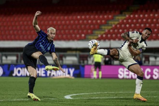 可惜,此前的门梁立柱似乎已经用尽了本场当中的运气,国米先后在81分钟和83分钟连续由拉古米纳打中横梁门柱各一次。此外,在击中门柱的那次射门之后,阿博尼福后点抢到落点想要补射被对手踹在了脚面上,可惜裁判没有表示,狗哥看了几遍慢动作,也依然无法确定皮球是否在双方接触的同时出了底线。