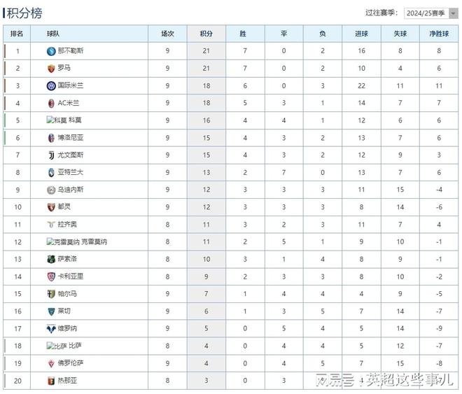 昨晚今晨,意甲联赛第9轮激战多场,国米主场3-0完胜佛罗伦萨,恰尔汗奥卢梅开二度登顶射手榜,新援苏西奇打进意甲处子球;罗马主场2-1击败帕尔马,因净胜球劣势位列第2位,埃尔莫索和多夫比克分别破门;尤文图斯主场3-1击败乌迪内斯,终结了8场不胜,弗拉霍维奇和伊尔迪兹分别点射,加蒂头球破门。